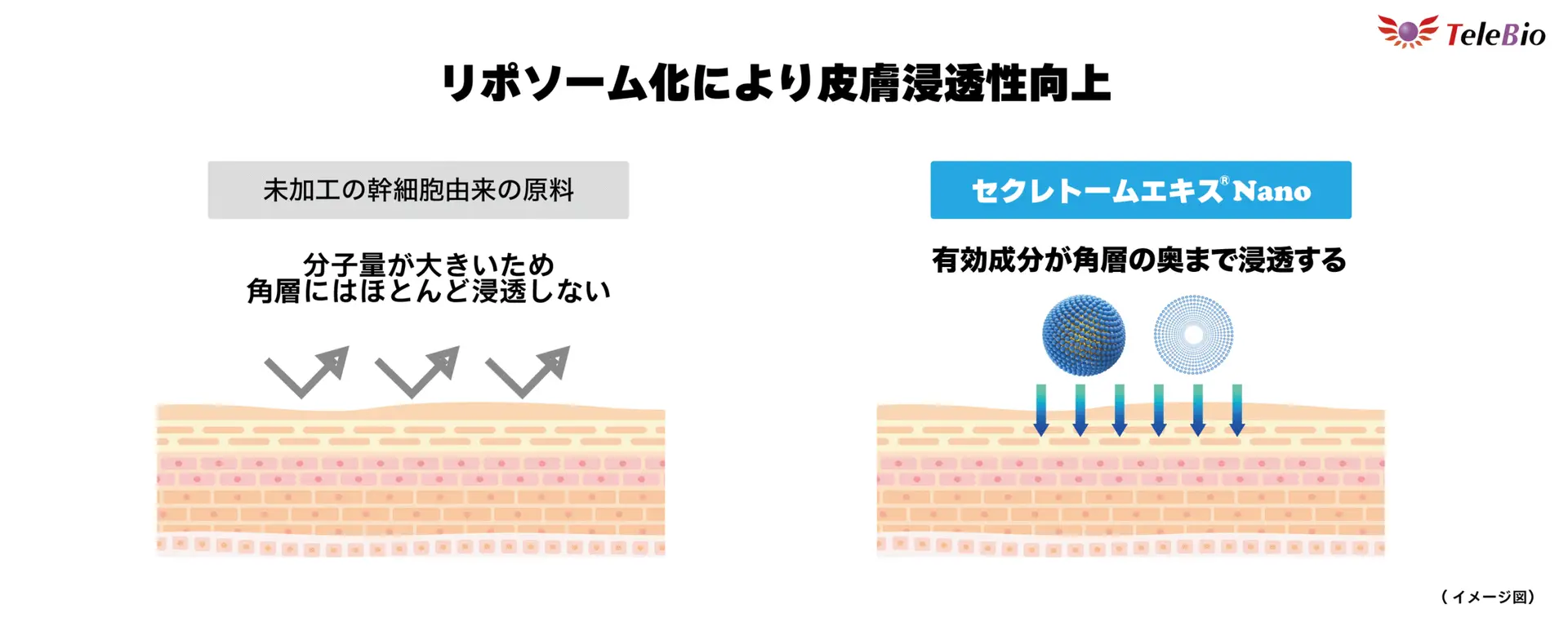 自治医科大学認定ベンチャーの株式会社テレバイオ(本社:東京都港区、代表取締役:吉村 浩太郎)は、株式会社日本触媒グループの最先端リポソーム技術を活用し、当社代表吉村浩太郎(自治医科大学 形成外科 教授)が開発したヒト脂肪幹細胞「セクレトームエキス®」※1 を内包した新しい化粧品原料「セクレトームエキス®Nano」を2025年4月29日より販売開始いたします。本製品は、PDI 0.15という極めて高い均一性を誇る多重層リポソームが、独自技術で浄化・高濃度化されたセクレトームエキス®を安定的に角層深部※2 へと届け、セクレトームエキス®の持つ優れた機能を最大限に活かします。